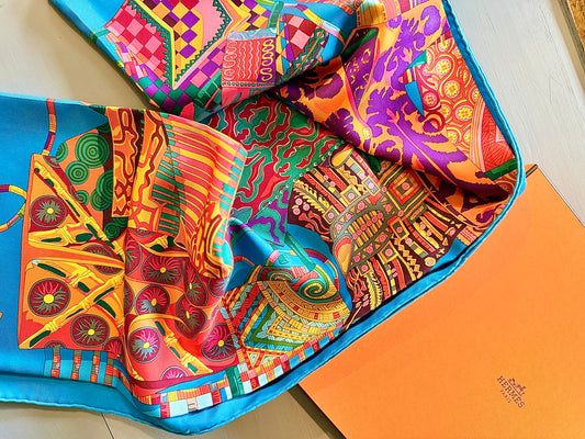 Carré foulard Hermès « Voyage en étoffes » 90/90
