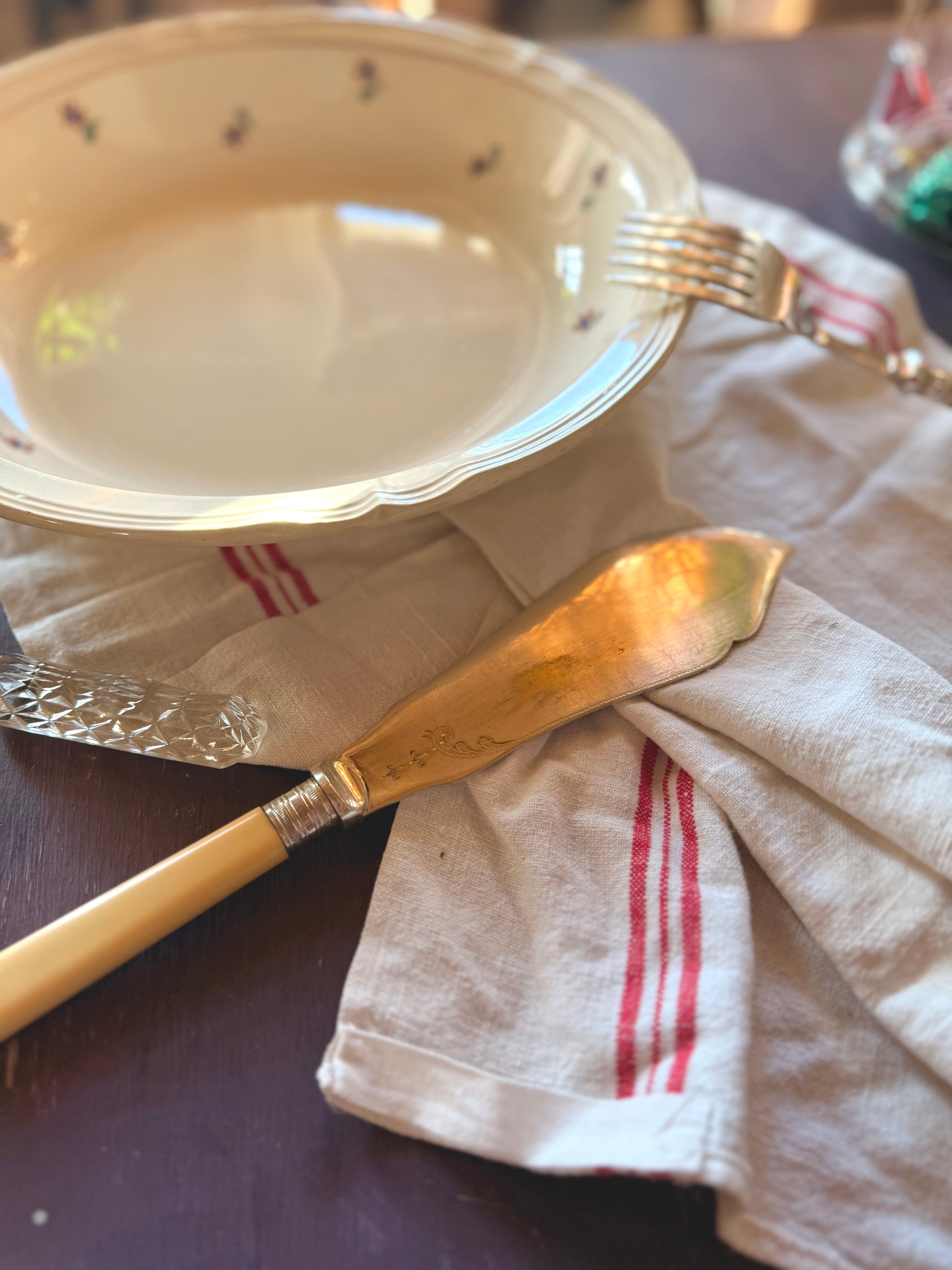 Plat creux en faïence de Digoin Sarreguemines. Des années 50’s. Décor peint à la main de petites fleurs.