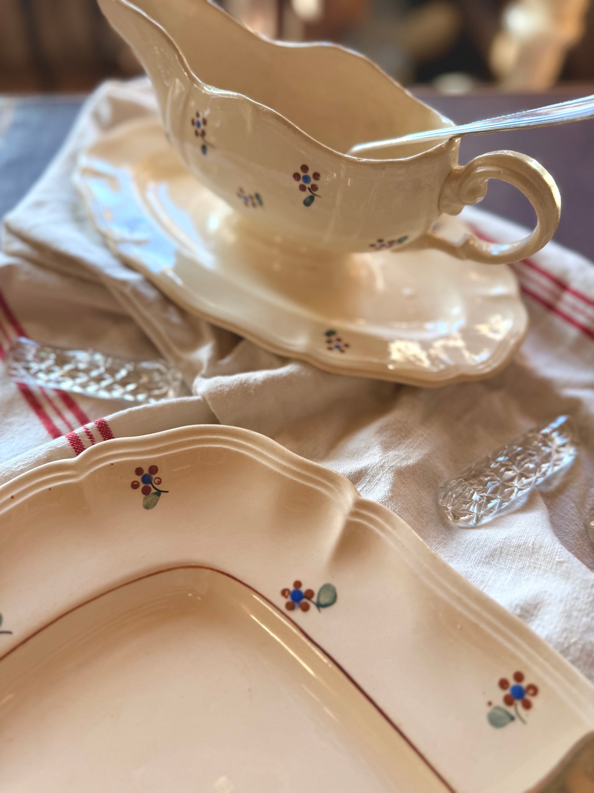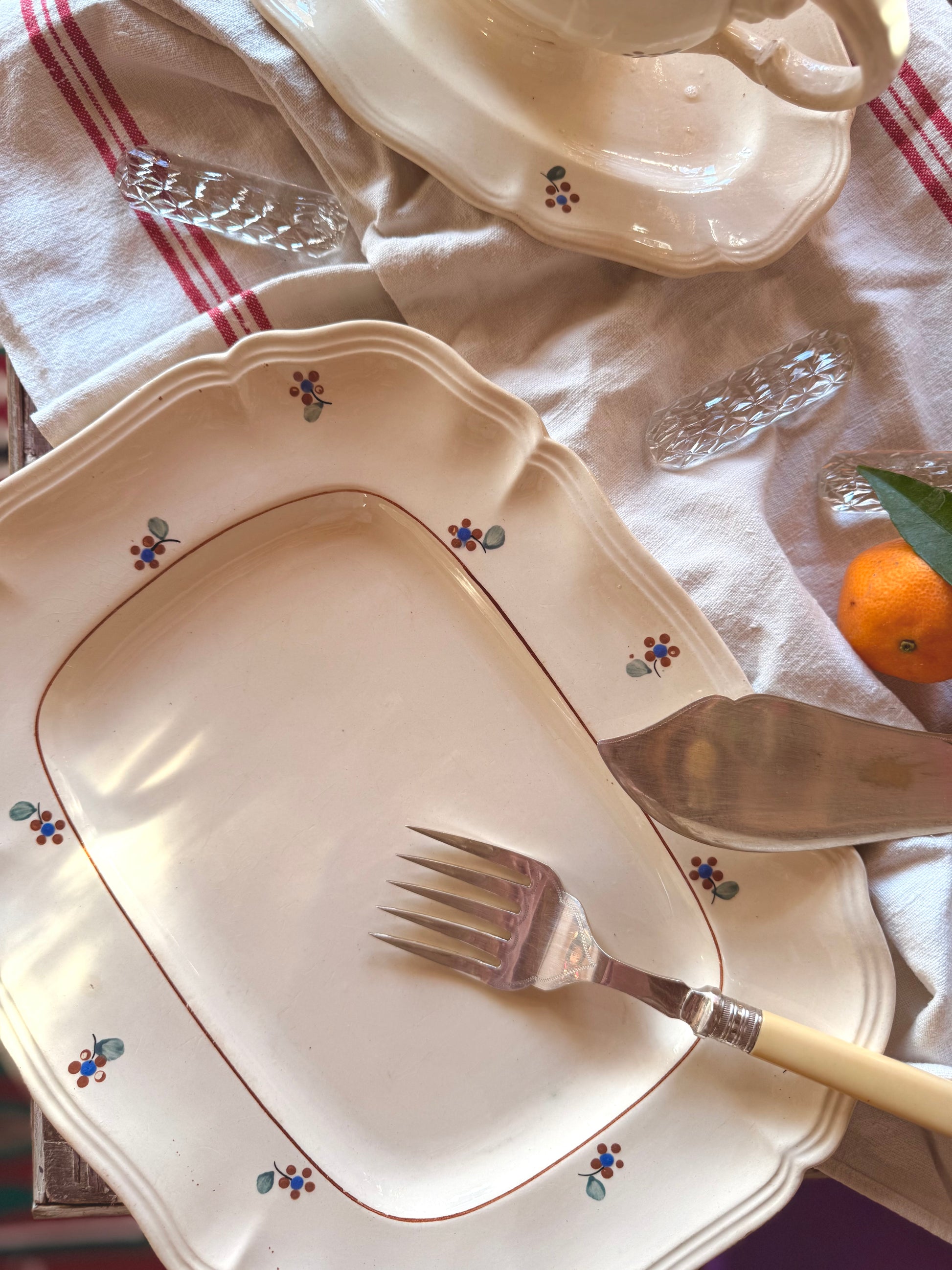 Plat rectangulaire en faïence de Digoin Sarreguemines. Des années 50’s. Décor peint à la main de petites fleurs délicates.