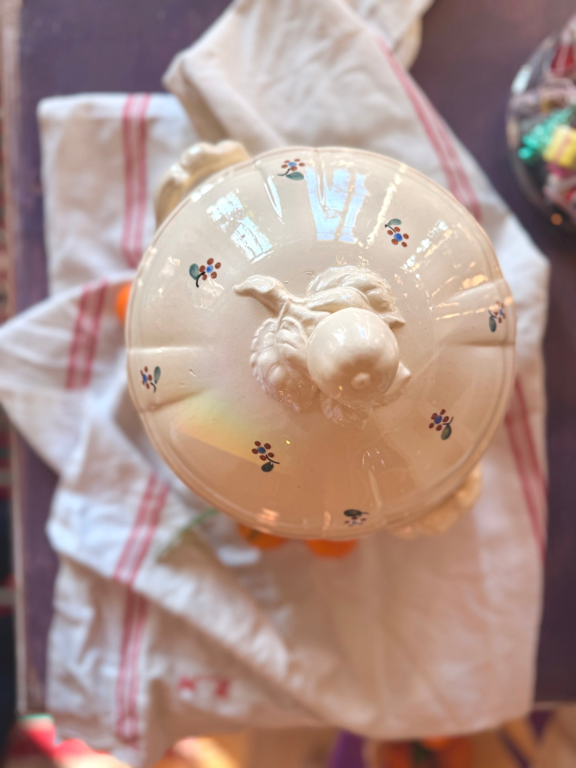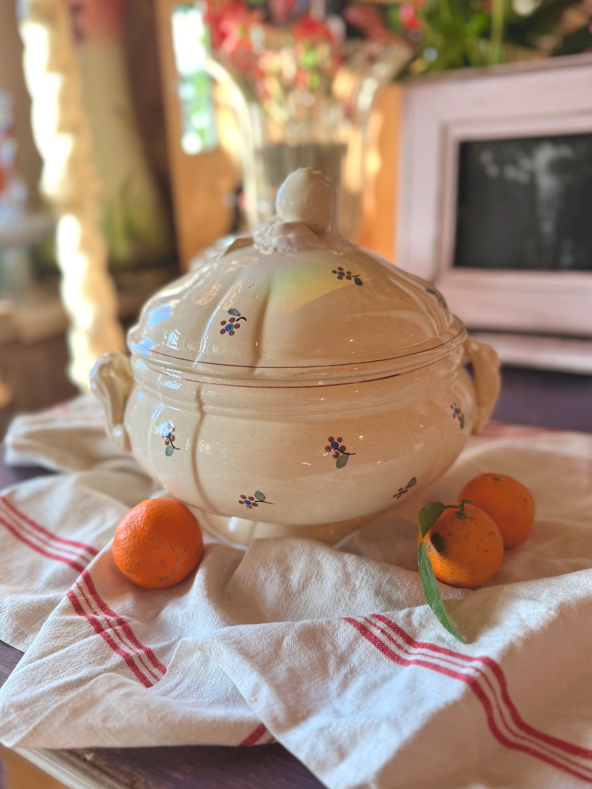 Soupière en faïence des années 50, de la manufacture de Digoin, Sarreguemines, modèle Arromanches.